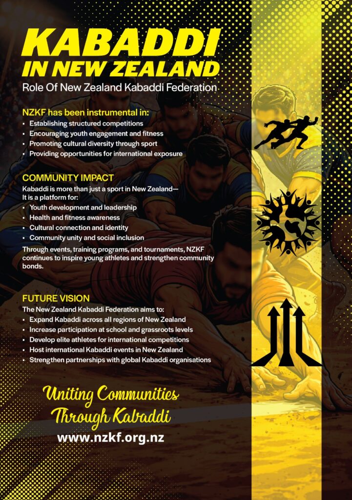 Through partnerships with overseas federations and participation in global events, we proudly represent New Zealand on the international Kabaddi stage.