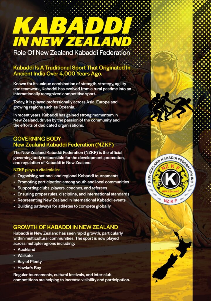 We host and sanction competitive Kabaddi events in cities including Auckland, Hamilton, Wellington, and Christchurch.